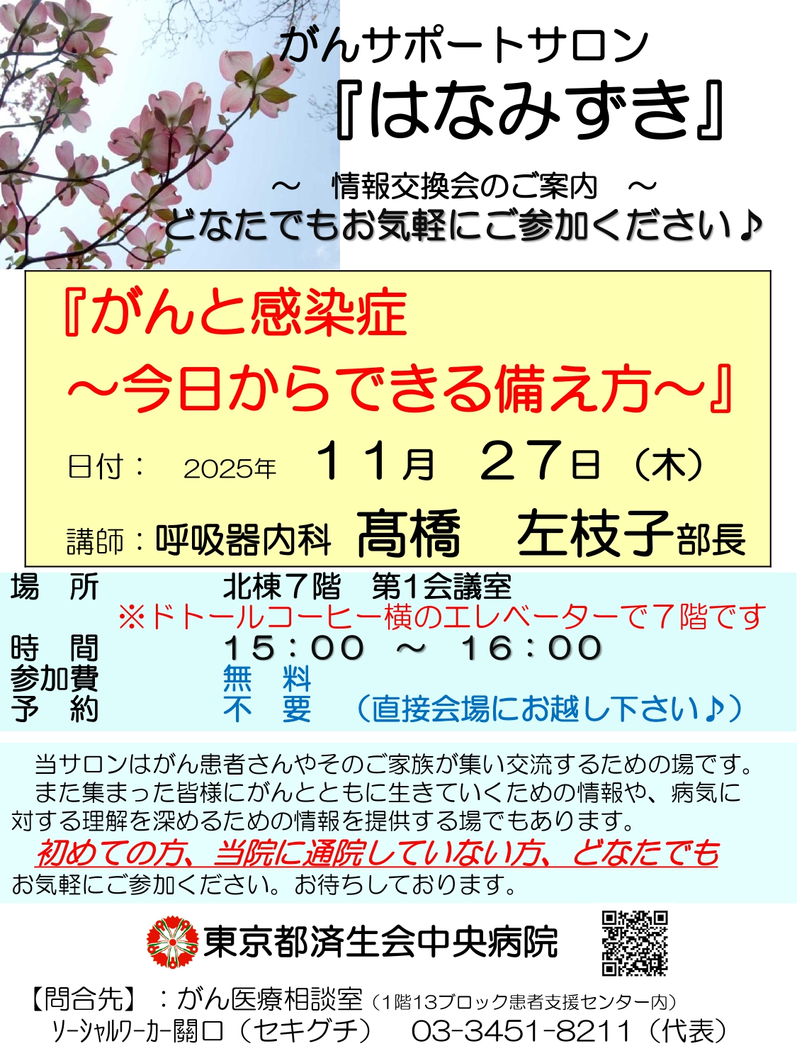 がんサポートサロン「はなみずき」は、がん患者さんとそのご家族が集い交流するための場(サロン)です。